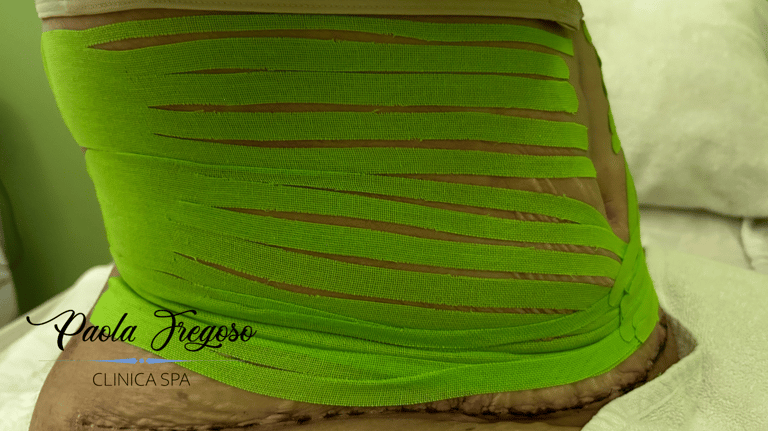Trans operatorio se aplica k-tape junto con el drenaje linfático manual, facilita le recuperación terminando la cirugía.